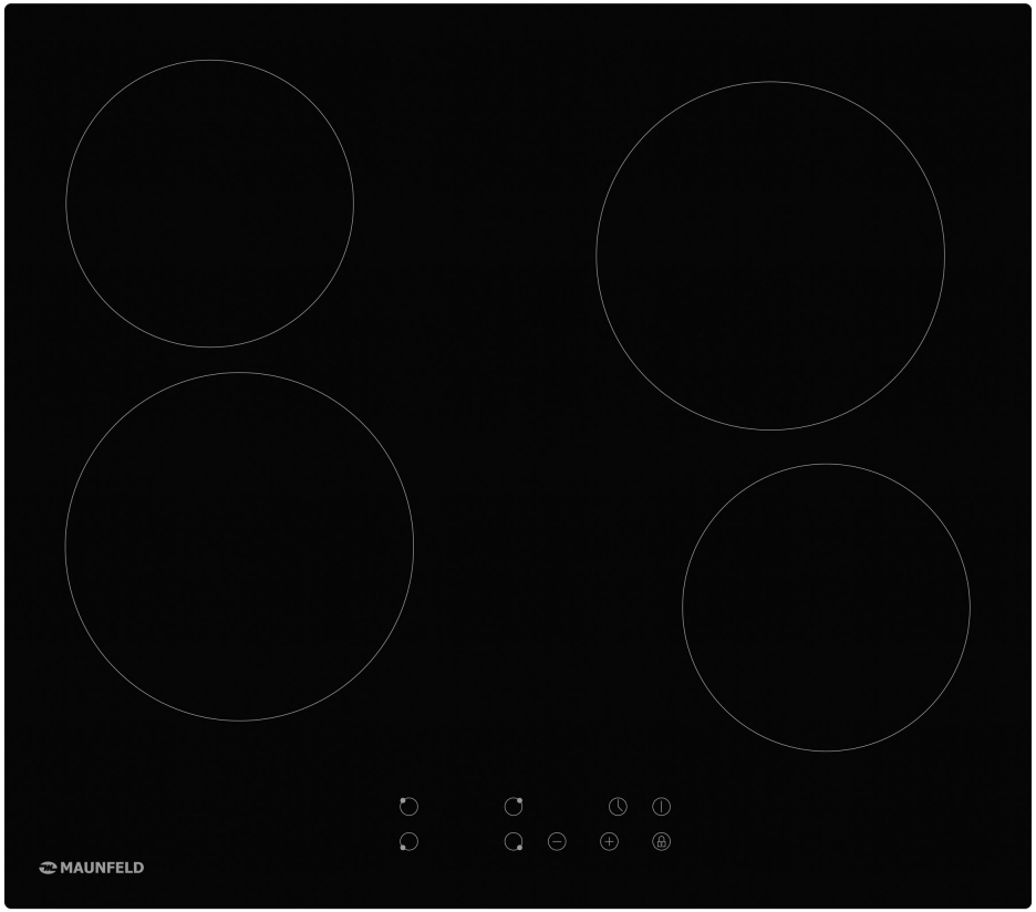 Для вашей безопасности на электрической панели Maunfeld EVCE.594-BK установлены индикаторы остаточного тепла, которые показывают остыла уже панель или еще горячая.
