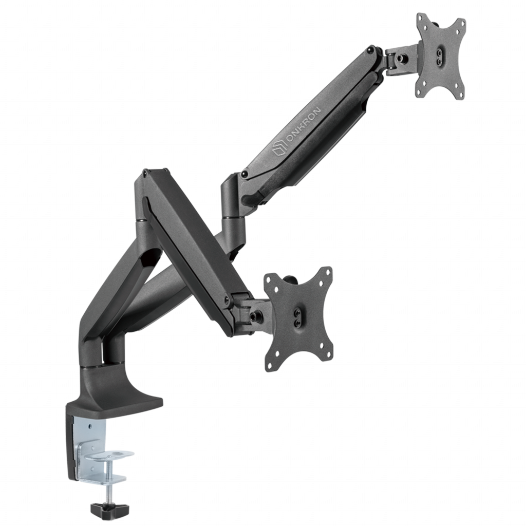 Кронштейн для 2 мониторов ONKRON/ 13-32" ГАЗЛИФТ макс 100*100 наклон -90º/+90º, поворот +-90°, 2 колена, вылет от стены до 525мм, крепление к столу 10-85мм, макс общий вес 9кг, черный