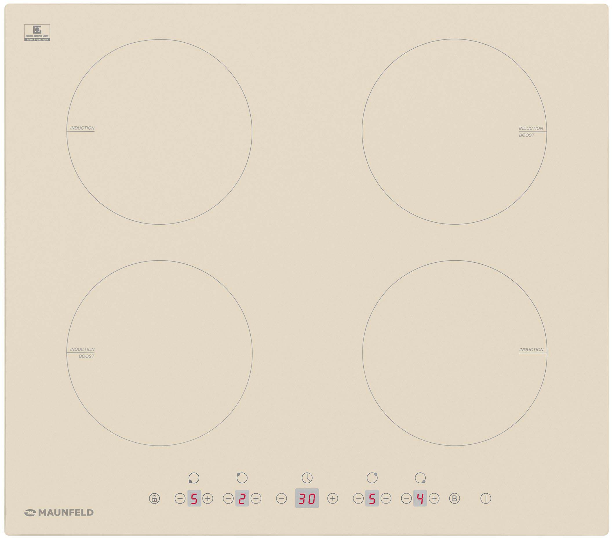 Maunfeld EVI.594-BG — это индукционная варочная панель на четыре конфорки, две из которых можно использовать в режиме бустера. Есть защита от детей, автоматическое отключение и защита от перегрева. Управление осуществляется с сенсорной панели. Материал поверхности — стеклокерамика производства компании Nippon Electric Glass (Япония), серия NeoCeram. Данный материал устойчив к резким перепадам температуры и имеет близкий к нулю коэффициент расширения, за счёт чего срок службы составляет до 30-ти лет.