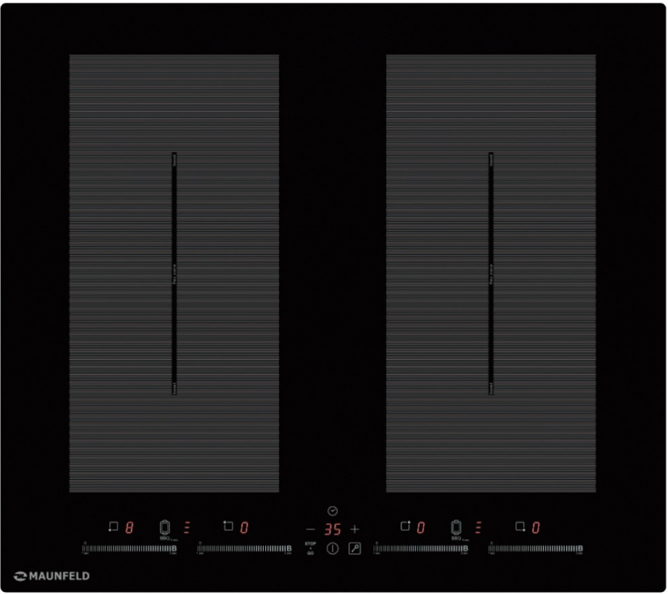 Электрическая панель Maunfeld EVI.594-FL2-BK имеет индукционный нагрев. Четыре конфорки быстро смогут вскипятить или подогреть любой продукт, к тому же, в этой модели используется технология FLEX ZONE, которая подразумевает использование сразу нескольких индукторов, которые создают увеличенную зону нагрева, размер которой варьируется в зависимости от посуды. Вы можете адаптировать зону под один большой противень или под несколько небольших кастрюль.. Данная модель обладает всеми необходимыми функциями, которые могут понадобиться на кухне - таймер с отключением на каждую конфорку, таймер минутный, индикация остаточного тепла, 9 уровней нагрева, блокировка от детей. В целях безопасности так же имеются защита от перегрева, блокировка всех элементов в случае мокрой поверхности и автоматическое отключение. Широкая и интуитивно понятная слайдерная сенсорная панель управления позволяет быстро и точно управлять значением температуры. Панель выполнена в черном цвете, без рамки.