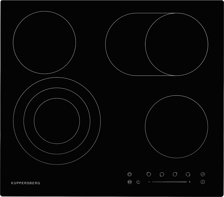 Электрическая, Электричекая независимая стеклокерамическая варочная поверхность, ширина 60 см, 4 зоны ускоренного нагрева HI-Light, 1 зона с тройным расширением, 1 зона с двойным расширением, сенсорное управление+слайдер, 5 цифровых дисплея, 9 уровней мощности, автоотключение, защита от детей, индикаторы остаточного тепла, таймер, Stop & Go, цвет черный/прямой край