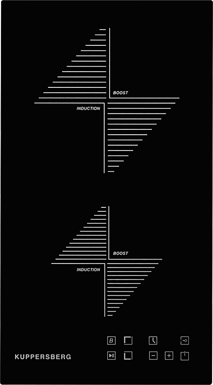 Индукционная независимая варочная поверхность стеклокерамическая, домино, ширина 30 см, 2 зоны индукционного нагрева, сенсорное управление, 3 цифровых дисплея, 9 уровней мощности, таймер, автоотключение, защита от перелива, защита от детей, индикаторы остаточного тепла, Stop & Go, цвет черный/ прямой край
