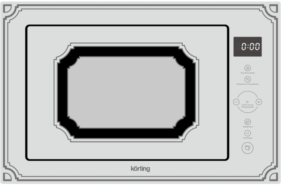 ГрильВ микроволновых печах Korting установлен гриль. Гриль — это способ приготовления пищи с помощью нагревательного элемента. При этом пища приобретает красивую, румяную, поджаристую корочку. С помощью этой функции можно, например, приготовить курицу-гриль с хрустящей корочкой или подрумянить говяжий стейк.