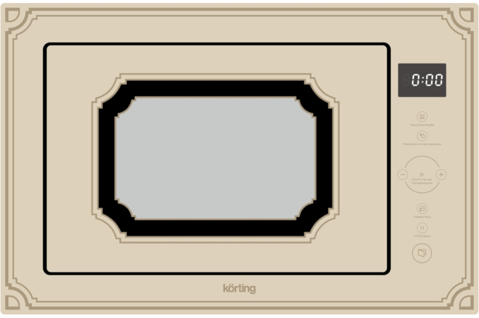 Классический дизайнДизайн ретро моделей микроволновых печей обладают не только одинаковым цветом, но и идентичными аксессуарами вместе с духовыми шкафами своей серии. Теперь в Körting есть полноценный комплект духового шкафа и микроволновой печи в ретро дизайне, который позволяет устанавливать их в кухонной мебели друг под другом.