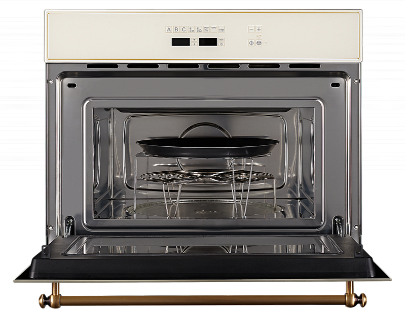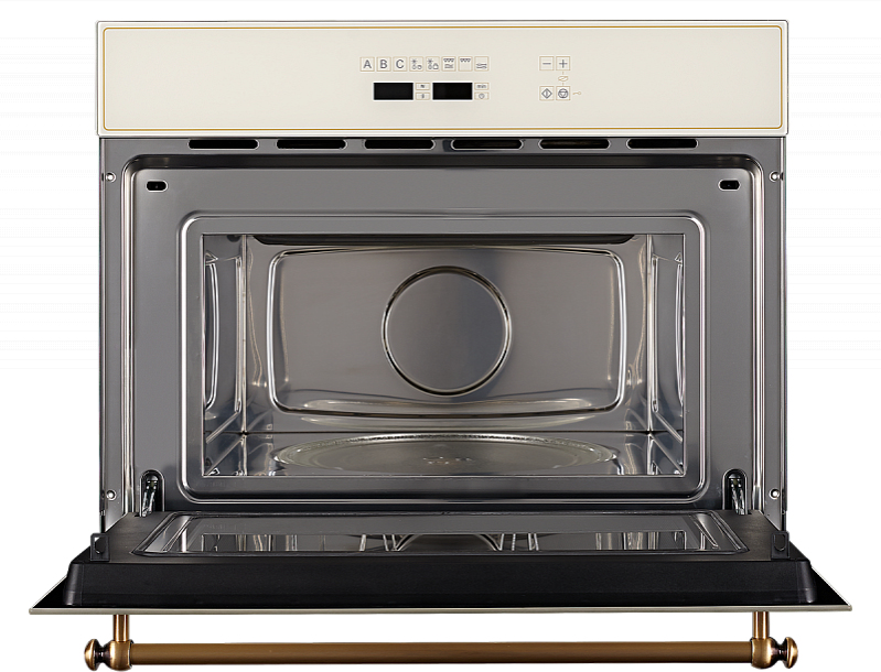 Встраиваемая микроволновая печь Kuppersberg/ Встраиваемая микроволновая печь, сенсорное управление, 11 режимов приготовления, 6 уровней мощности, функция автоматической и ручной разморозки, таймер на 90 минут, камера из нержавеющей стали, дверца с трехслойным остеклением, откидной гриль, галогеновое освещение, отключение поворотного стола, блокировка от детей, диаметр поворотного стола - 32 см, объем 32 литра, цвет: бежевый/фурнитура цвета бронзы