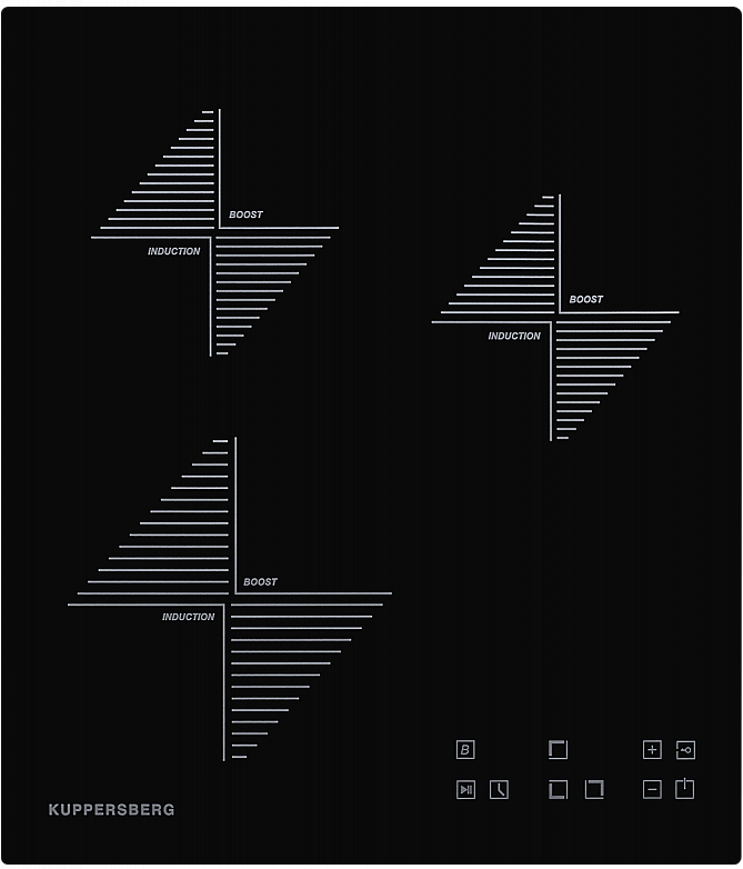 Индукционная варочная поверхность стеклокерамическая,ширина 45 см, 2 зоны 1,3 кВт(BOOSTER 1,5 кВт), 1 зона 2 кВт(BOOSTER 2,2 кВт),электронное сенсорное управление, 4 цифровых дисплев, 9 уровней мощности,автоматическое отключение,«Защита от детей»/Блокировка панели управления, Таймер до 99 минут, Stop & Go, Индикаторы остаточного тепла, цвет черный/прямой край
