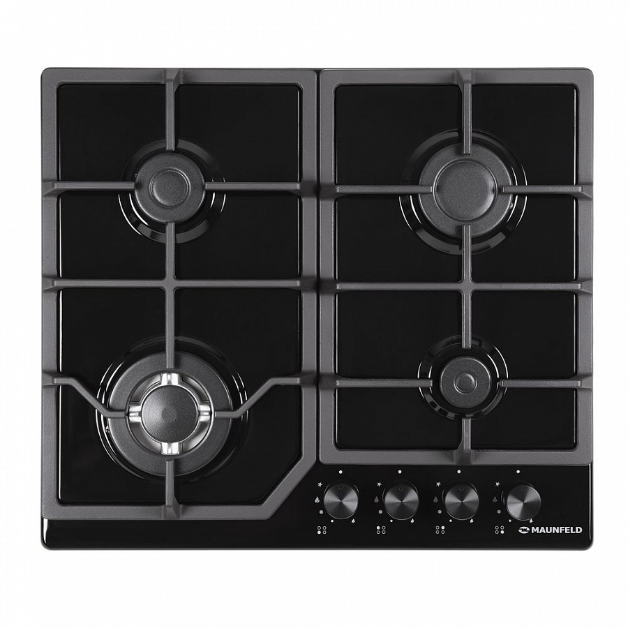 Встраиваемые газовые панели MAUNFELD/ газ, 60 см, механическое управление, 4 конфорки, черный