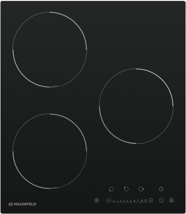 Встраиваемые индукционные панели MAUNFELD/ индукция,45 см, 3 конфорки, сенсорное управление, черный цвет