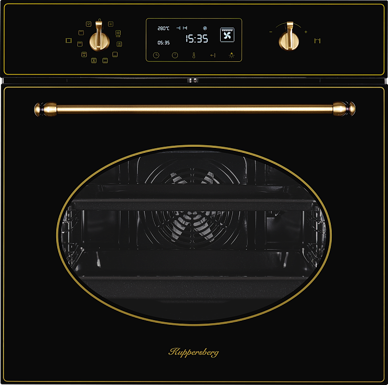 электрический, 60 см, 11 режимов, конвекция, гриль, гидролиз, электронное управление, поворотные переключатели, черный,фурнитура - бронза