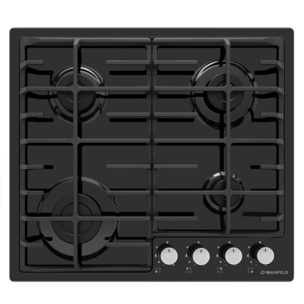 Встраиваемые газовые панели MAUNFELD/ Газ, Тип: газовая 60см , чугунные решетки, газ-контроль, электроподжиг, жиклеры для балонного газа, черная