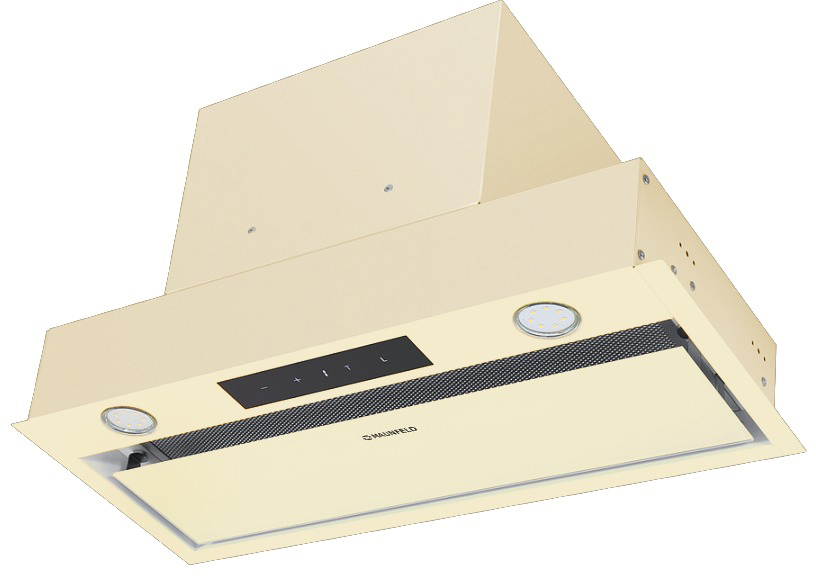 Встраиваемая вытяжка монтируется в шкаф над поверхностью плиты. На ваш выбор можно сделать отвод в вентиляционное отверстие или использовать сменный угольный фильтр.