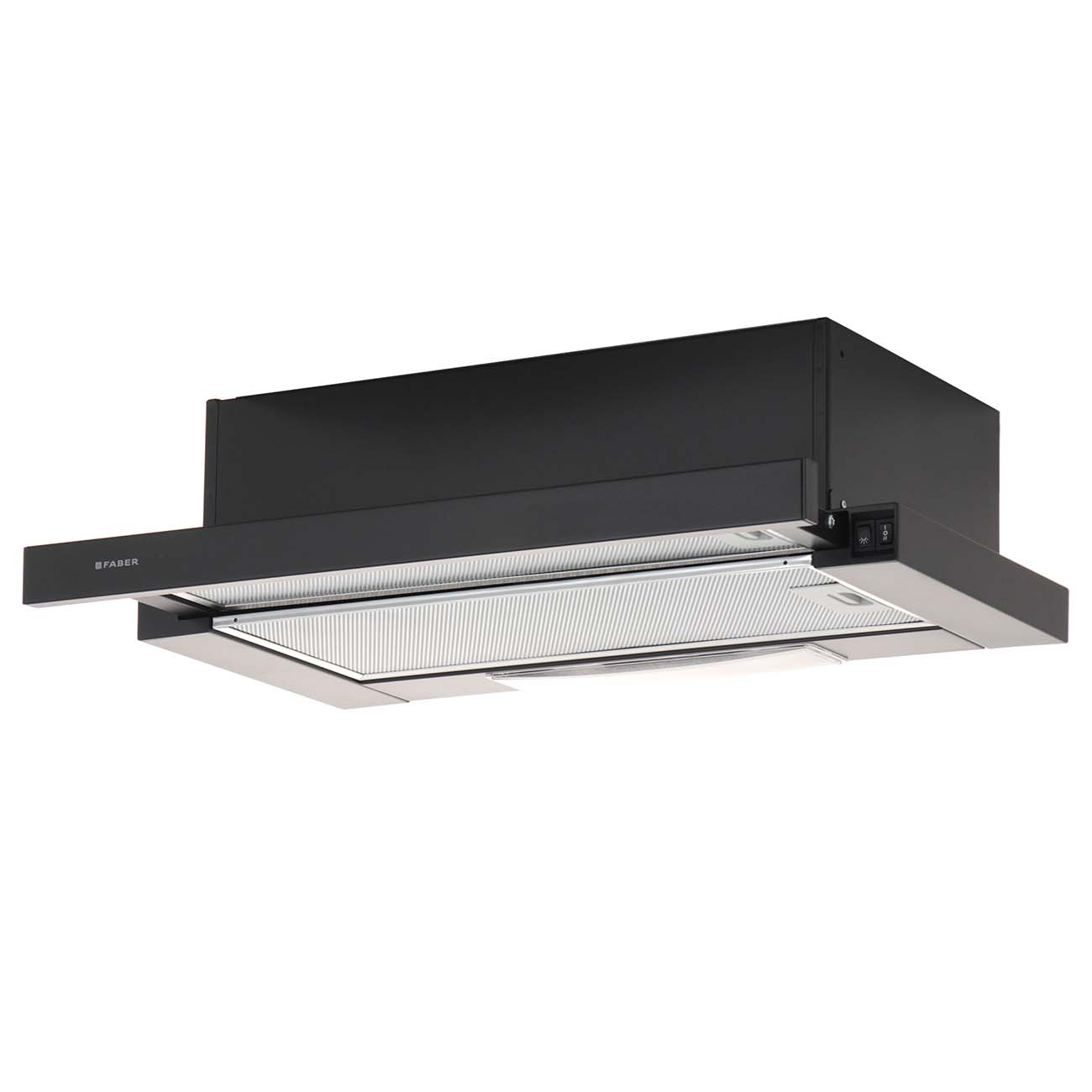 Вытяжка FABER FLOX GLASS BK A50 полностью встраивается в шкаф над варочной панелью шириной до 50 см.Вытяжка легко включается - достаточно выдвинуть экран. Галогенное освещение и простое управление с помощью слайдера делают комфортным использование прибора.