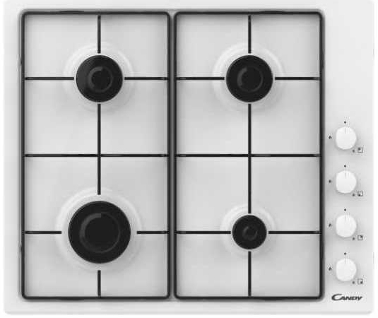 Газовая варочная поверхность 60 см. Цвет: Белый. Цвет ручек: белый. Автоматический электроподжиг. 4 конфорки: быстрая, 2-е полубыстрые и вспомогательная. 2 эмалированных решетки. Цельноштампованная поверхность. Комплект форсунорк для балонного газа. Мощность 7,2 кВт