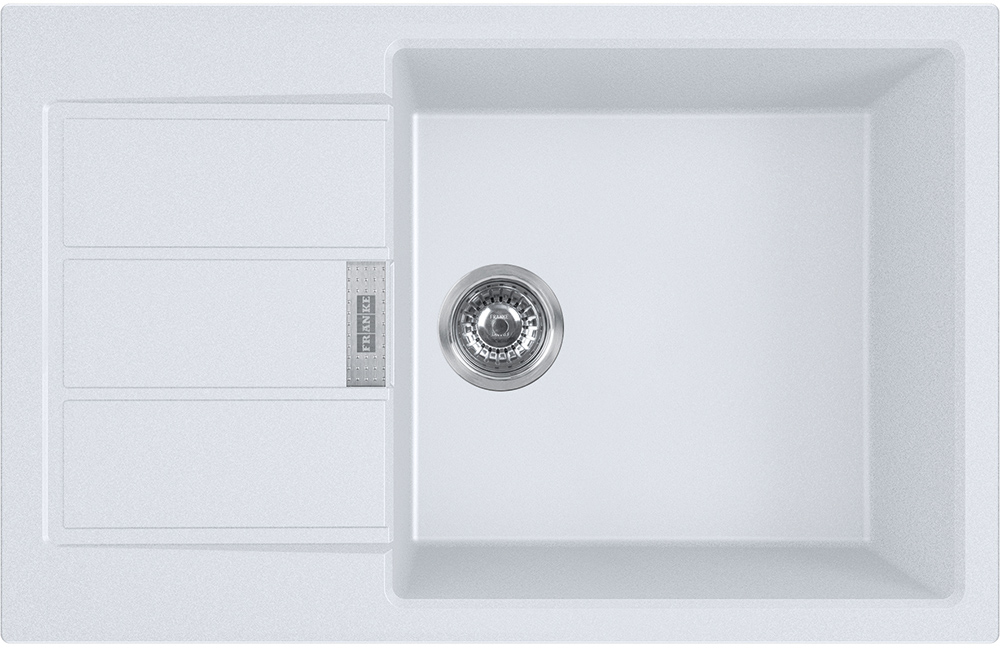 модель укомплектована вентилем-автомат и сифоном, оригинальный скрытый перелив под пластиной из нержавеющей стали с логотипом Franke, крепления FastFix® обеспечивают легкий монтаж мойки в столешницу толщиной от 12 мм