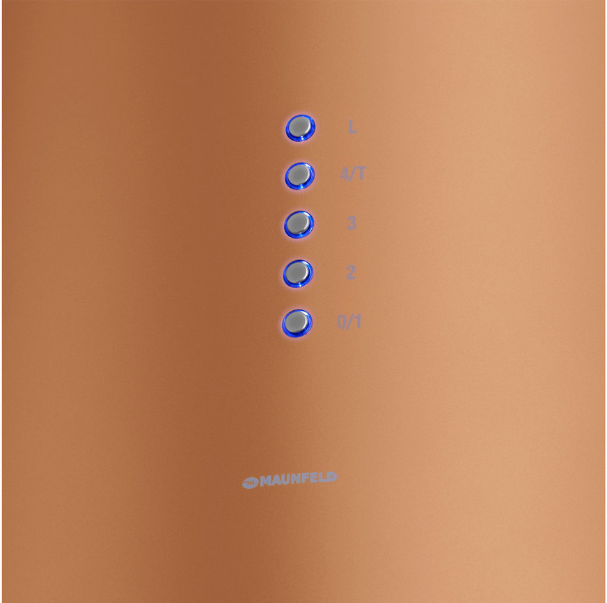 ВЫТЯЖКА MAUNFELD LEE ISLA 39 BLACK/ островная вытяжка с потолочным креплением, 1050 м3, кухни до 40м2, 52дБ, LED, электронное управление, в опции угольный фильтр CF172C, медный цвет