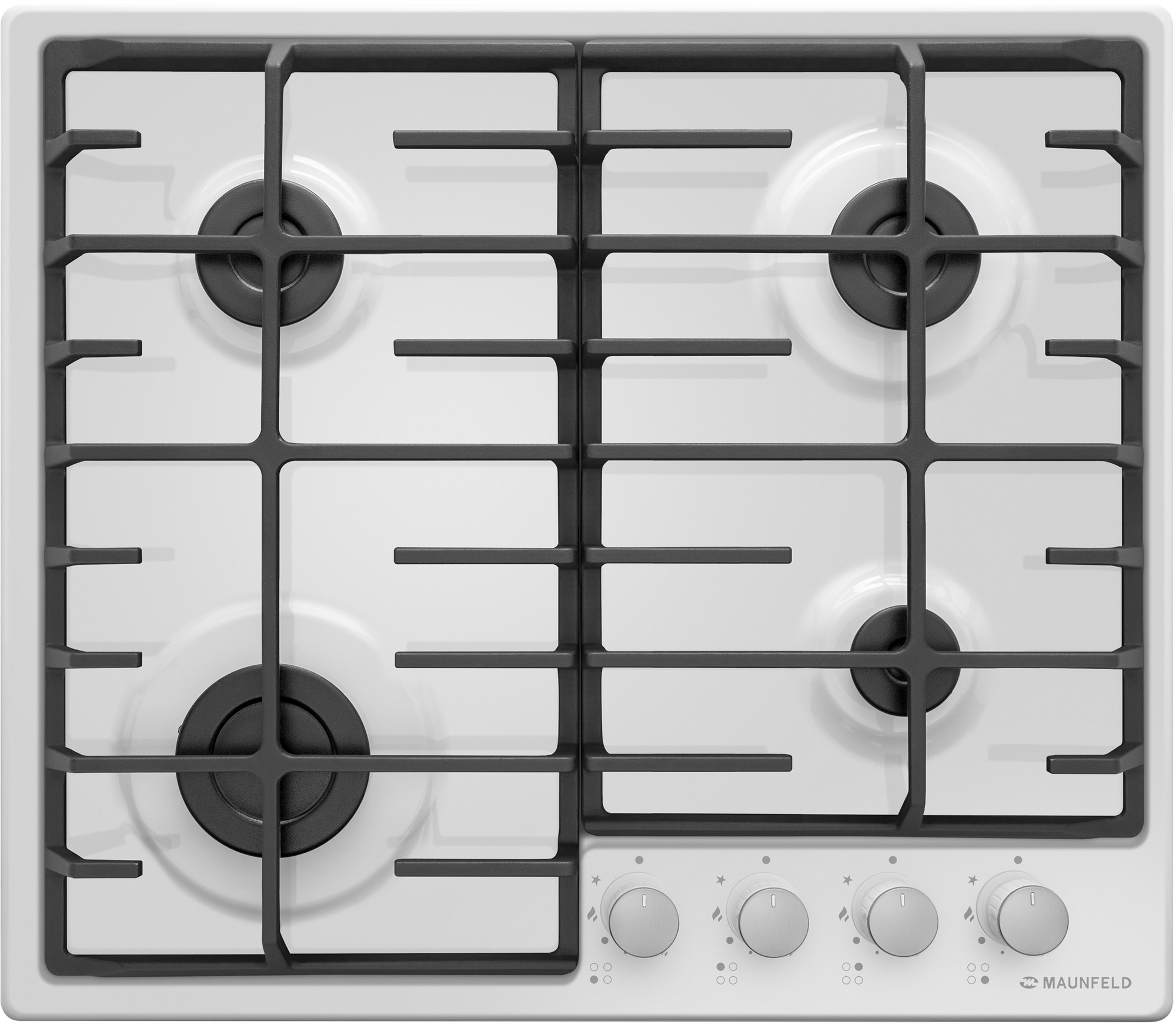 Усовершенствованная встраиваемая газовая варочная панель шириной 60 см может работать от магистрального газа и газа в баллоне (тип G30), для этого достаточно поставить специальные французские жиклеры SOURDILLON, идущие в комплекте.Панель выполнена из металла, покрытого термостойкой прочной эмалью белого цвета. Четыре стандартные итальянские конфорки SABAF мощностью 1000 Вт, 1700 Вт, 1700 Вт и 2600 Вт спроектированы таким образом, что огонь не перегревает ни чугунные решетки, ни ручки управления. Обновленный дизайн чугунных решеток в виде крестообразного соединения над конфорками позволяет готовить в посуде разного диаметра, не используя специальные подставки. Решетки теперь расположены вплотную друг к другу, образуя единую рабочую зону. Теперь вы можете просто передвинуть посуду с конфорки на конфорку, не поднимая ее. Регулирование подачи газа и электроподжиг конфорок происходит с помощью поворотных цельнометаллических ручек. Для простоты использования около каждой ручки нанесены информационные изображения: используемая конфорка, подача газа выключена, электроподжиг, максимальное пламя и минимальное пламя.Система газ-контроля надежно защищает бытовой прибор от утечек газа при неожиданном затухании конфорки.