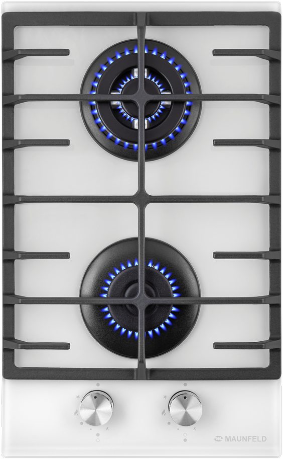 Компактная встраиваемая газовая варочная панель шириной 30 см поместится даже на небольшой кухне. Работает от магистрального газа и газа в баллоне (тип G30). Для этого достаточно поставить специальные жиклеры французской фирмы Sourdillion, которые есть в комплекте.Панель белого цвета выполнена из закаленного стекла толщиной 8 мм от немецкого производителя Schott. В данной модели установлены высококачественные итальянские горелки «Sabaf». Одна стандартная конфорка мощностью 1700 Вт и одна WOK-конфорка с двойным пламенем мощностью 3000 Вт.Чугунная решетка имеет крестообразные соединения над конфорками, что позволяет готовить в посуде разного диаметра, не используя специальные подставки. Она выполнена с дополнительной упругой прокладкой, что повышает ее устойчивость и предотвращает появление царапин на эмали.Регулирование подачи газа и электроподжиг конфорок происходит с помощью поворотных цельнометаллических ручек. Для простоты использования около каждой ручки нанесены информационные изображения: используемая конфорка, подача газа выключена, электроподжиг, максимальное пламя и минимальное пламя.Система газ-контроля надежно защищает бытовой прибор от утечек газа при неожиданном затухании конфорки.