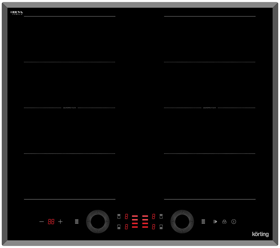 Световой индикатор в варочных поверхностях Korting горит, пока температура соответствующего нагревательного поля не понизится до 60°С. Это можно также использовать для подогрева блюд при уже выключенной варочной панели, что позволяет экономить электроэнергию, а так же сообщит когда можно приступать к очистки поверхности.