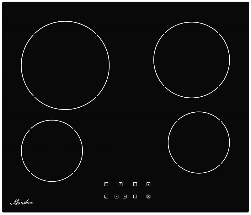 Независимая стеклокерамическая варочная поверхность,Ширина 60 см, 4 зоны ускоренного нагрева HI-Light:передняя левая 145 мм / 1200 кВт-передняя правая 145 мм / 1200 кВт-задняя левая 210 мм / 2100 кВт-задняя правая 180 мм / 1800 кВт,Электронное сенсорное управление,5 цифровых дисплеев, 9 уровней мощности,Автоматическое отключение,Защита от детей,Блокировка панели управления,Индикаторы остаточного тепла,Таймер,размеры и подключение:,Мощность подключения: 6,2 кВт.