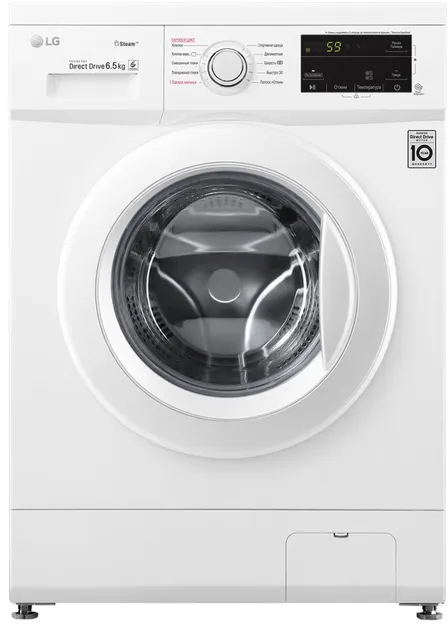 Стиральная машина LG Electronics/ Узкая стиральная машина с функцией пара, 85x60x45, 6.5 кг, 1200 об/мин, дисплей LED, корпус белый/люк серебристый