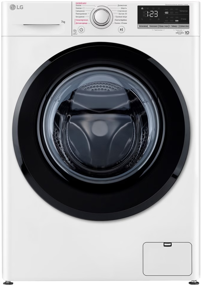 Стиральная машина LG Electronics/ Узкая стиральная машина с технологией AI DD, 85x60x45.5, загрузка фронтальная, 7кг, до 1200 об/мин при отжиме, функция пара, дисплей, цвет: белый, люк черный