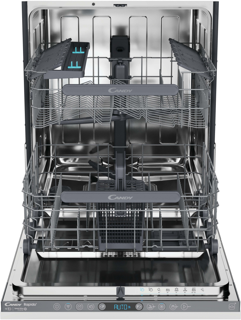 Candy Rapido’— самая быстрая и вместительная посудомоечная машина среди машин данного форм-фактора. Для отдельно стоящих и встраиваемых моделей Rapido’ разработана программа Wash&Dry 35' — самая быстрая программа мойки и сушки на рынке, позволяющая эффективно справиться с грязной посудой всего за 35 минут. Candy Rapido’ отмоет и высушит до 8 комплектов посуды со свежими загрязнениями так быстро, что это покажется невероятным. Это стало возможно за счёт нового инверторного бесщёточного двигателя Speed Drive , полностью переработанной гидравлической и новой вместительной камере Maxi Tub