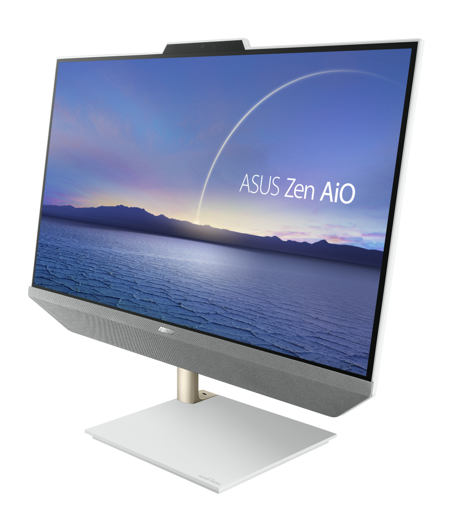 ASUS Zen AiO 24 – это красивый и функциональный компьютер, выполненный по принципу «все в одном». Высокая производительность сочетается в нем со стильным дизайном с оригинальными деталями в виде смещенной от центра металлической подставки и покрытых тканью динамиков, сертифицированных компанией Harman Kardon. Моноблок оснащается тонкорамочным дисплеем NanoEdge с диагональю 23,8” и относительной площадью 93%.