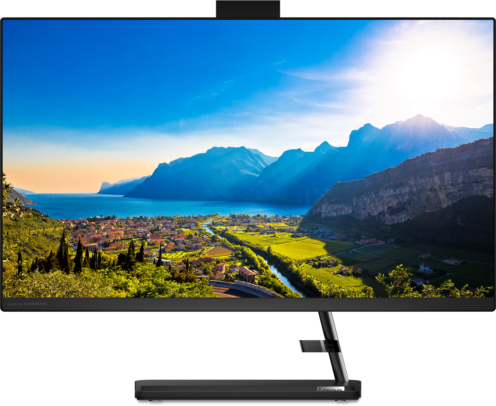 Конструкция устройства отличается изяществом и компактностью — моноблок предназначен для того, чтобы впечатлять. Он обеспечивает высочайшую производительность за счет использования процессоров Intel® Core™ i7 11-го поколения (в максимальной комплектации) и дискретной видеокарты NVIDIA® GeForce® MX450 (в максимальной комплектации). Кроме того, в системе хранения данных, состоящей из твердотельного накопителя емкостью до 1 ТБ и жесткого диска емкостью 512 ГБ, можно разместить огромный объем информации. Узкие рамки (с трех сторон) дисплея стандарта FHD и стереодинамики, сертифицированные Harman Kardon®, дополняют техническое оснащение этого непревзойденного семейного ПК.