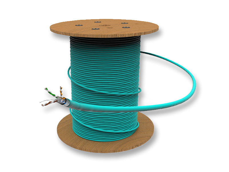 Кабель F/UTP Кат.6А, 500 МГц,23AWG/1, LSZH 3-22, 7,3 мм, бирюзово-синий (RAL5018), барабан 500 м