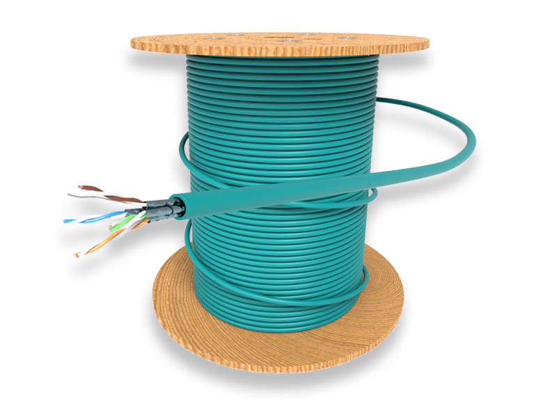 Кабель U/FTP Кат.6А Ungrounded, 500 МГц, 23AWG/1, FR-LSZH 60332-3 (Cca), 8,0 мм, бирюзово-синий (RAL 5018), барабан 500 м