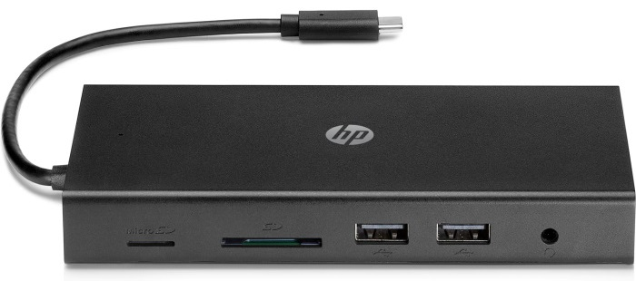 Адаптер HP Travel USB-C Multi Port Hub EURO cons. Интерфейс: 2xUSB 3.0, 2xUSB 2.0, VGA, HDMI, USB-C, RJ-45, SD, MicroSD