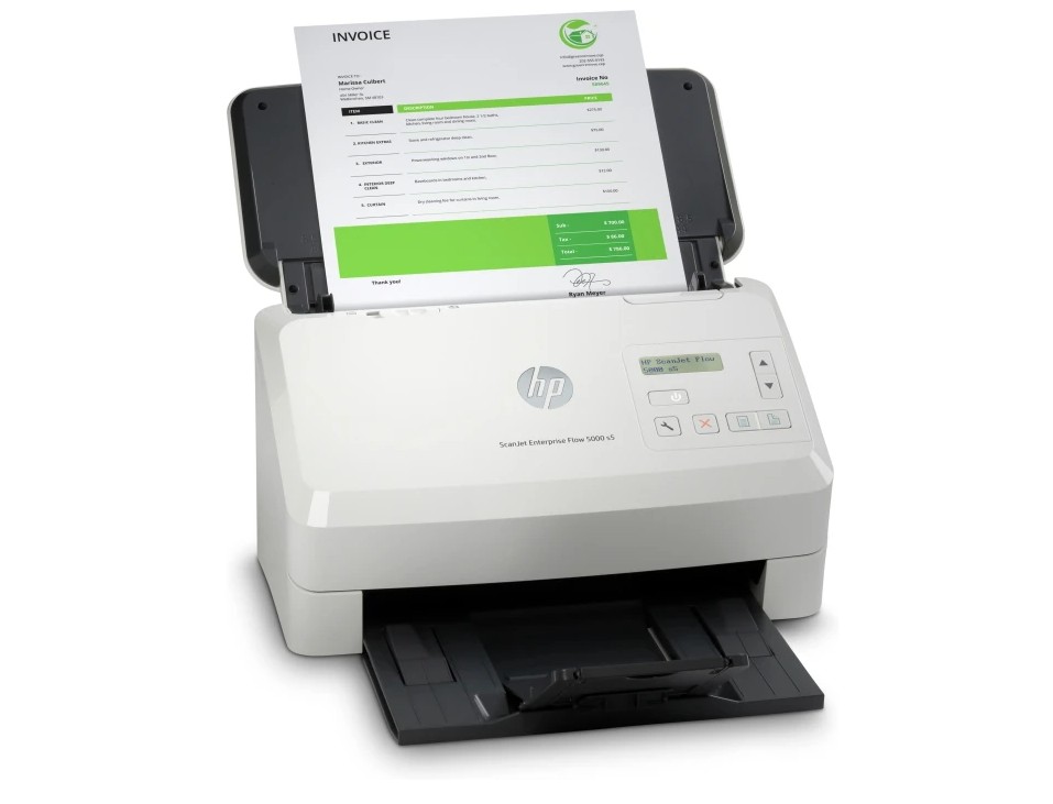 Сканер HP ScanJet Enterprise Flow 5000 s5 (CIS, A4, 600 dpi, USB 3.0, ADF 80 sheets, Duplex, 65 ppm/130 ipm, 1y warr, (replace L2755A)). Сканирование на ПК, USB-накопитель; Память: 512 Мб; Процессор: 666 МГц. Комплектация: Сканер, Кабель питания, USB кабель, Руководство пользователя
