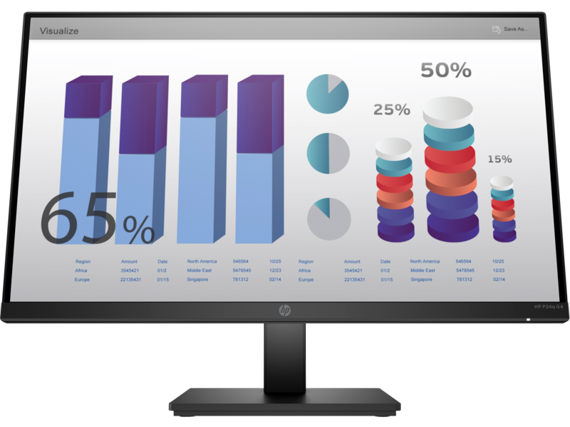 HP P24q G4 23,8 Monitor 2560x1440 QHD, IPS, 16:9, 250 cd/m2, 1000:1, 5ms, 178°/178°, HDMI, VGA, Plug-and-Play, height, Black (нет евровилки, опция)
