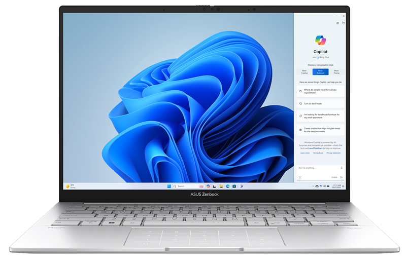 Ноутбук ASUS Zenbook 14 OLED UX3405MA-QD488W Core Ultra 7 155H/16b LPDDR4X/1TB SSD/14" OLED WUXGA(1920 x 1200)/WiFi6E/Windows 11 Home Rus/1.22Kg/Foggy Silver/RU_EN_KEYBOARD