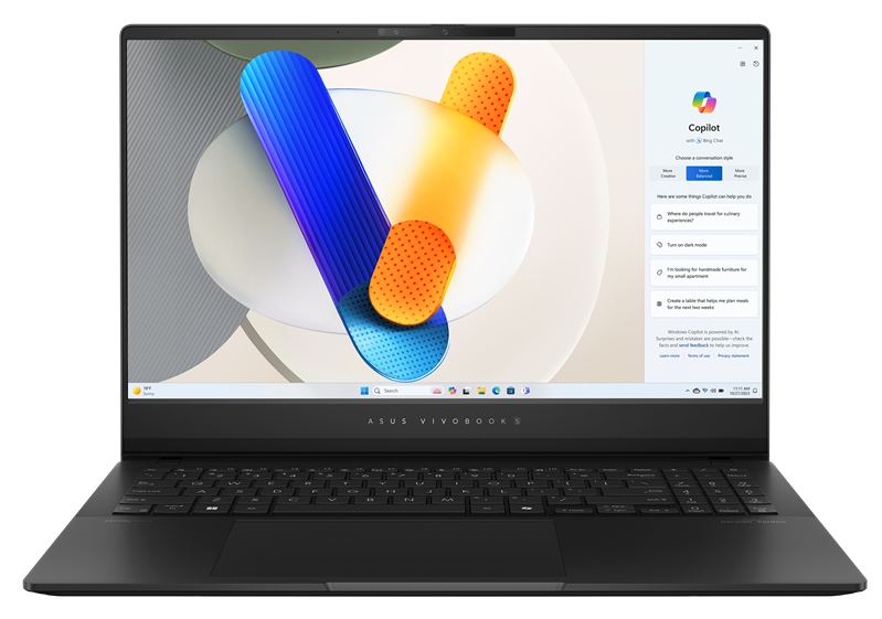 ASUS Vivobook S 15 OLED S5506MA-MA070W Intel Core Ultra 9 185H/LPDDR5X 16GB/1TB SSD/15.6" 3К (2880 x 1620) OLED 120Hz/WIN11 HOME Rus/1.3Kg/Neutral Black/RU_EN_KEYBOARD