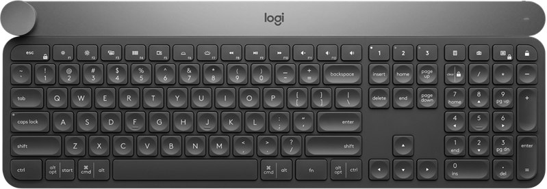 Клавиатура Logitech Wireless Craft Advanced keyboard, Bluetooth [920-008505]. Радиус действия беспроводной связи 10 м, шифрование беспроводной сети, выключатель питания, три световых индикатора подключения, индикатор Caps Lock, индикатор состояния батареи, возможность зарядки через разъем USB Type-C, совместимость с мышами, поддерживающими технологию Logitech Flow. Комплектация: Беспроводная клавиатура, приемник Unifying, кабель для зарядки, документация пользователя