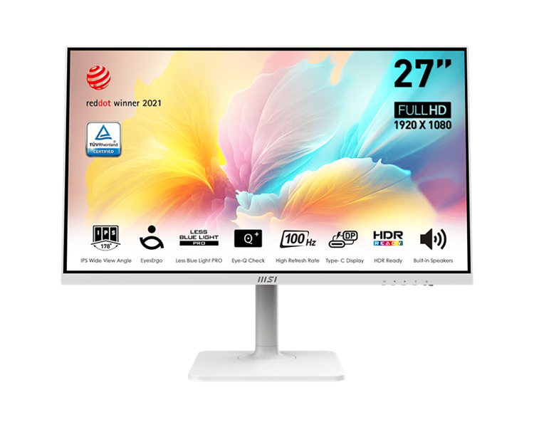 MSI Modern MD2712PW 27" 16:9 FHD(1920x1080) IPS Flat,1ms(MPRT),1000:1,100M:1,300nit,178/178,HDMI 1.4,USB-C,Speaker,Tilt,Swivel,Height,Pivot,VESA,100Hz,White,1y war-ty