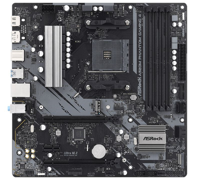 ASROCK A520M PHANTOM GAMING 4, AM4, A520, 4*DDR4, 4*SATA, 2*M.2, 4*USB 3.2, 2*USB 2.0, 2*PCIx16, 1*PCIx1, DP+HDMI, mATX