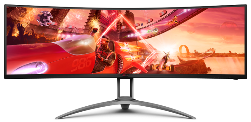 Монитор 49" AOC AG493UCX Curved 1800R 5120x1440 120Гц VA LED 32:9 4ms 2*HDMI DP USB-C/4xUSB3.2 80M:1 3000:1 178/178 550cd Tilt HAS Swivel Speakers 2*5w Black. Комплектация: Монитор с подставкой, Пользовательская документация, Дистанционное управление, Кабель питания, Кабель DP, Кабель HDMI
