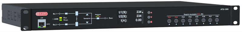 ELEMY ATS, 1U, 230V, 16А, in (2) C20, out (2) C19 (6) C13, Ethernet, защита от КЗ, плавный пуск