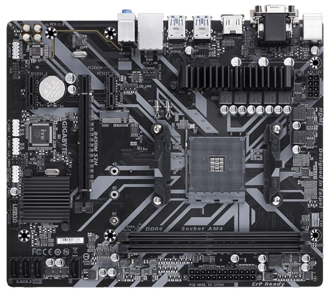 Gigabyte B450M S2H // AM4, AMD B450, 2xDDR4-2933, D-SUB+DVI-D+HDMI, 1xPCI-Ex16, 2xPCI-Ex1, 4xSATA3(RAID 0/1/10), 1xM.2, 8 Ch Audio, GLan, (2+4)xUSB2.0, (4+2)xUSB3.1, 2xPS/2, mATX, RTL