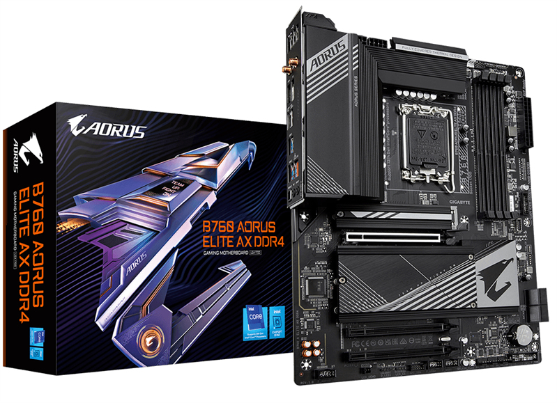 Материнская плата GIGABYTE B760 AORUS ELITE AX DDR4, LGA1700, B760, 4*DDR4, DP+HDMI, 4 SATA 6 Гб/с, M2, Audio, Gb LAN, USB 3.2, USB 2.0, Type-C, ATX