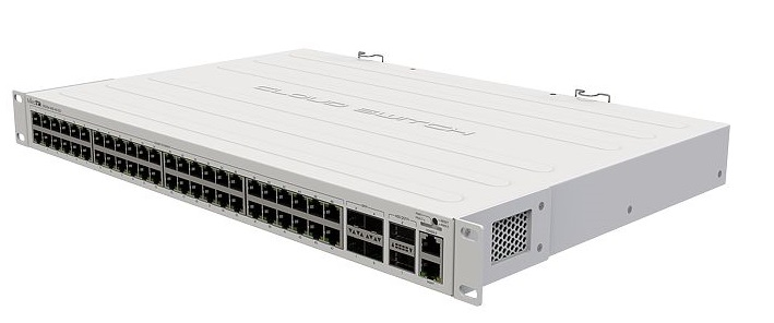 MikroTik Cloud Router Switch 354-48G-4S+2Q+RM with 48 x Gigabit RJ45 LAN, 4 x 10G SFP+ cages, 2 x 40G QSFP+ cages, RouterOS L5, 1U rackmount enclosure, Dual redundant PSU