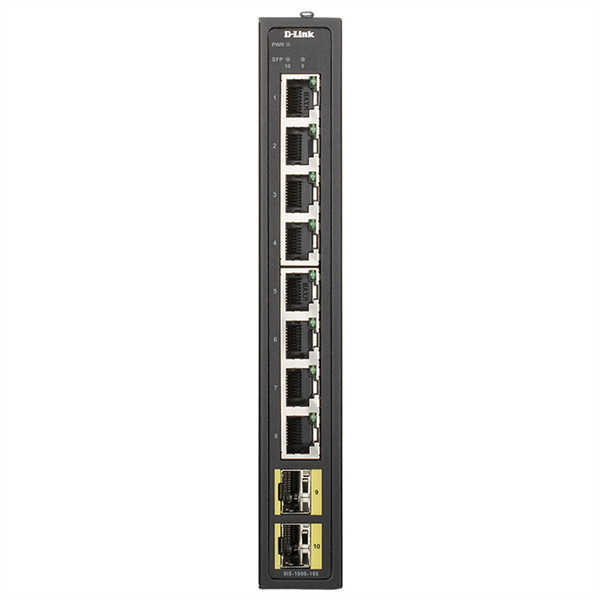 D-Link DIS-100G-10S/A2A, L2 Unmanaged Industrial Switch with 8 10/100/1000Base-T and 2 1000Base-X SFP ports 2K Mac address, Jumbo Frame 9K, 802.3x Flow Control, 802.3az Energy-Efficient Ethernet (EE