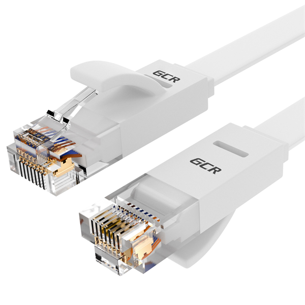 GCR Патч-корд PROF плоский прямой 7.5m, UTP медь кат.6, белый, 30 AWG, ethernet high speed 10 Гбит/с, RJ45, T568B
