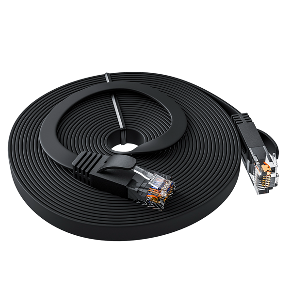 GCR Патч-корд PROF плоский прямой 20.0m, UTP медь кат.6, черный, 30 AWG, ethernet high speed 10 Гбит/с, RJ45, T568B