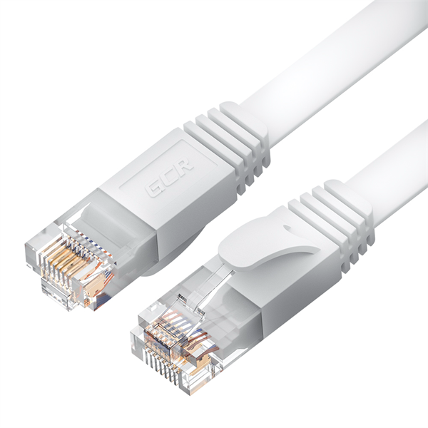 GCR Патч-корд PROF плоский прямой 5.0m, UTP медь кат.6, белый, 30 AWG, ethernet high speed 10 Гбит/с, RJ45, T568B