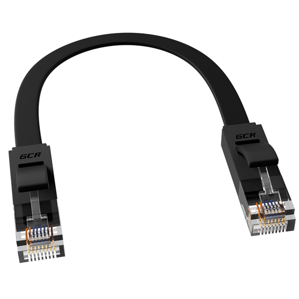 GCR Патч-корд PROF плоский прямой 0.15m, UTP медь кат.6, черный, 30 AWG, ethernet high speed 10 Гбит/с, RJ45, T568B
