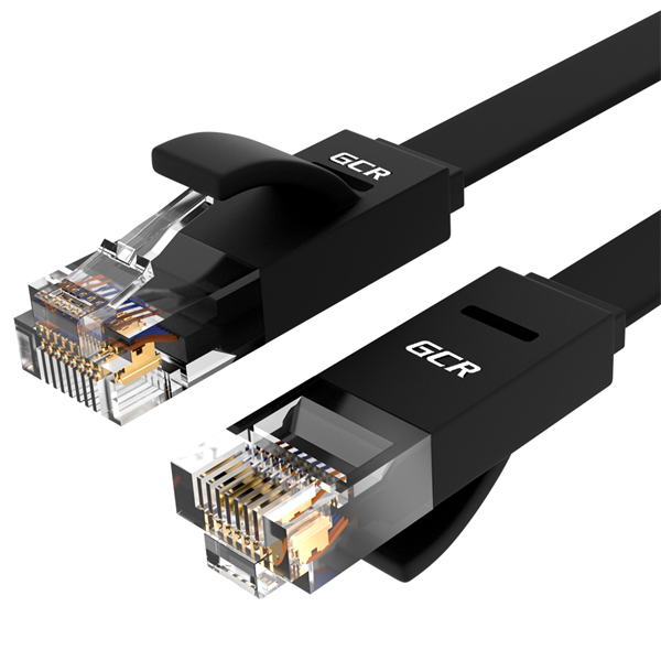 GCR Патч-корд PROF плоский прямой 7.5m, UTP медь кат.6, черный, 30 AWG, ethernet high speed 10 Гбит/с, RJ45, T568B