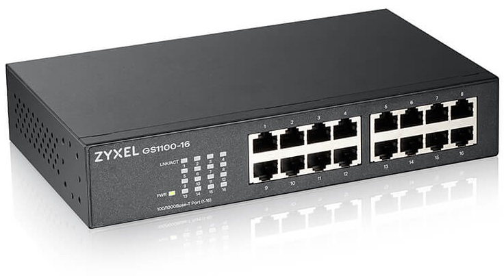 Коммутатор Zyxel GS1100-16, 16xGE, rack 19", бесшумный